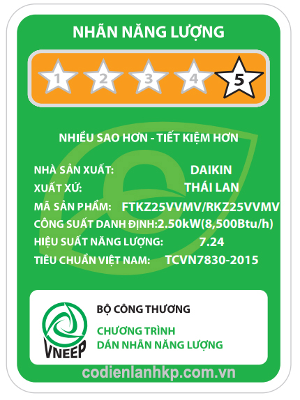 Một nhãn dán năng lượng của Bộ Công Thương để người mua tham khảo khả năng tiết kiệm điện, thông qua chỉ số sao năng lượng và hiệu suất năng lượng của sản phẩm.