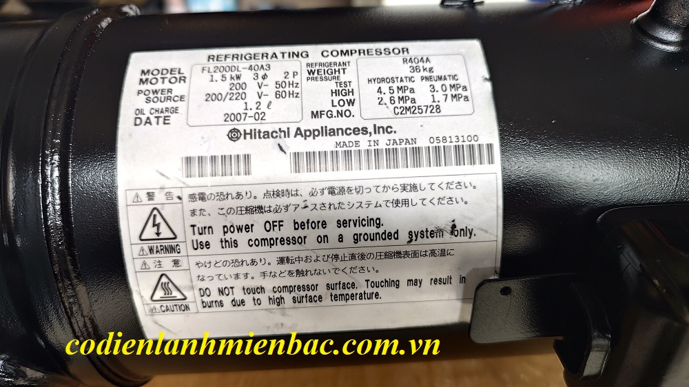 Máy nén FL200DL-40A3 là một dạng máy nén âm của Hitachi, sản xuất tại Nhật Bản.
