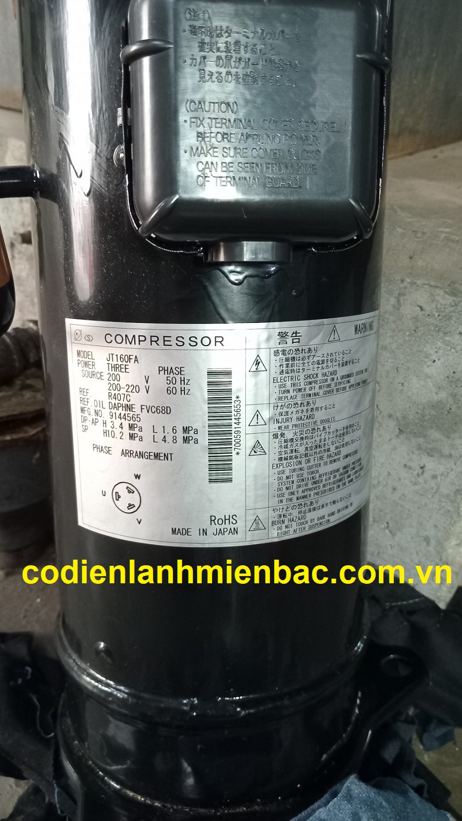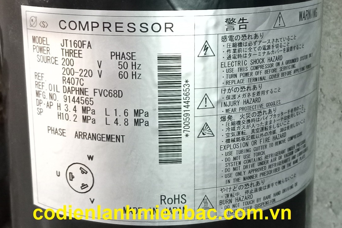Máy nén JT160FA là một dạng máy nén của Daikin, sản xuất tại Nhật Bản. Máy sử dụng gas R407C.