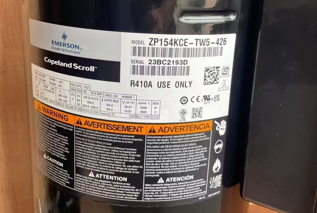 Máy nén ZP154KCE-TW5-426 là một dạng máy nén của Copeland, sản xuất tại Thái Lan.