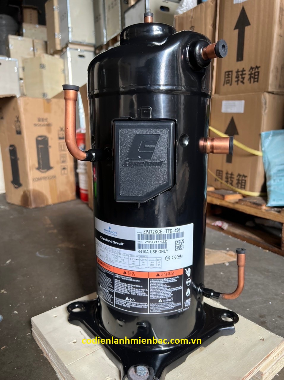 Máy nén ZPJ72KCE-TFD-496 là một dạng máy nén xoắn ốc của Copeland, sản xuất tại Thái Lan.