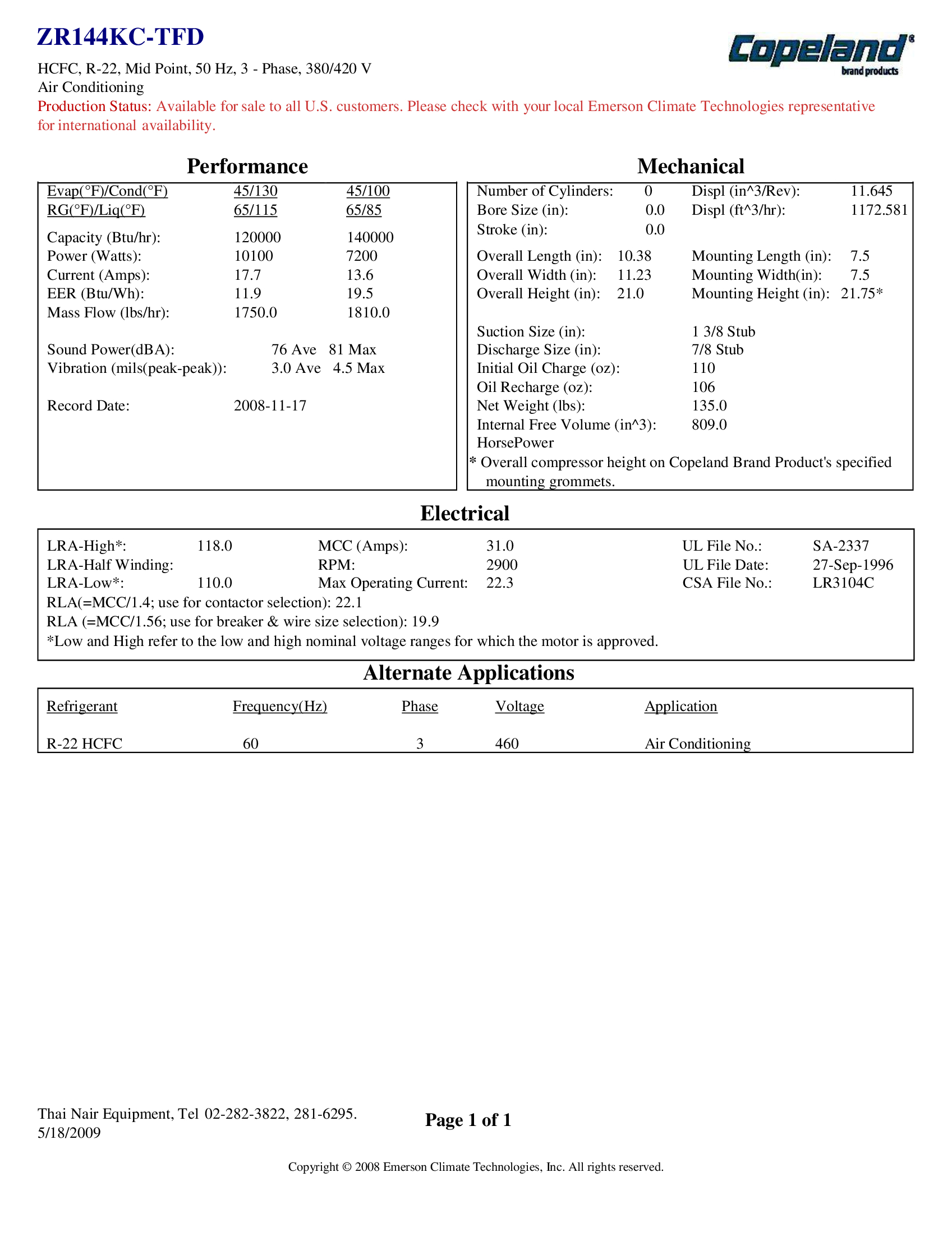 - Xuất xứ: COPELAND – THAILAND